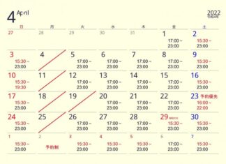 ・4/3(日)休業日 ・4/10(日)休業日 ・4/17(日)休業日