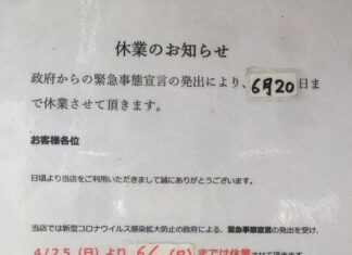 午前中に、店に行き、営業自粛延長のため、貼り紙交換。
