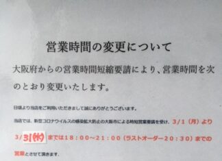 当店では、新型コロナウイルスの感染拡大防止の大阪市による時短営業要請を受け、3/1(月)より3/21(日)まで予定していた...