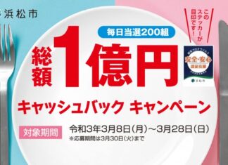 3/8より、浜松市の『総額1億円キャッシュバックキャンペーン』が始まります。