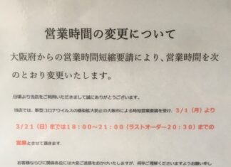 当店では、新型コロナウイルスの感染拡大防止の大阪市による時短営業要請を受け、3/1(月)より3/21(日)までは18:00...