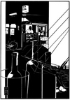 窓際のボトルや帆船模型の向こうに、豆腐屋さ...