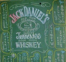 バー・ピーコート店内の黒板のご紹介。ワイフが月に1...