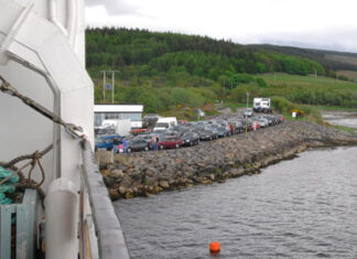 次の乗船を待つ車たち・・・。観光でしょうか?それともアイラに帰省なのでしょうか?