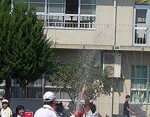 写真はお弁当を早々に食べ終えた子供達が水で遊んでいる所。