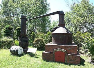見学コースの入り口の横に、初代蒸溜機が飾られていました。