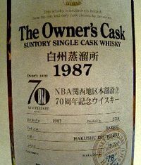 NBA関西本部70周年記念 白州1987 オーナーズ・カスク