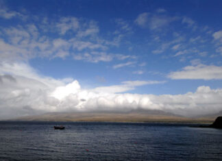 「ブナハーブン」とは、ゲール語で「河口」を意味するそうで、目の前がアイラ海峡、その先にジュラ島が見えます。