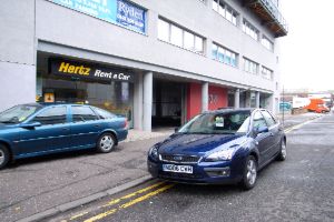 運転手に地図を見せて、ハーツ・レンタカーの営業所へ。