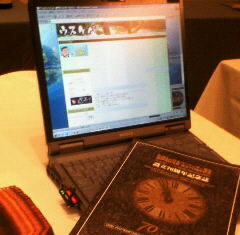 70周年記念誌とパソコンくん。 なんとか機嫌良さそうです(^^ゞ ウスケバブースは入って左奥です。 皆様のお越しをお待ちしています。 byオオタ #オオタ@staff
