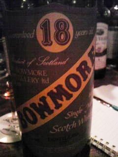 歴史に残る名ボトル。1989年発売の同ラベル(色違い)は3種ある。残り2つも高評価。 □Bowmore 18y 1971 57.3%, G&M for Sestante, Sherry ボウモアは以前、生産量の7割がカスタマー用であったが、現在9割がシングルモルトとして販売されているという。今後はボトラーズに対しても供給しない方針とのこと。 また、アイラ島でフロアモルティングを続けているのは、ラフロイグとボウモアだけである。蒸留所自らフロアモルティングする自家製麦芽が3に対して、本土のシンプソンズ社から仕入れる麦芽が5であるという(どちらもオプティック種) フェノール値20-25PPM |