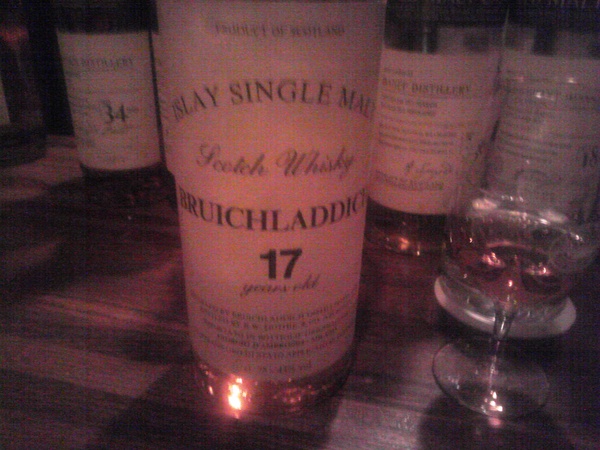 ブルイックラディ蒸留所の125周年ボトルの評価が私にしては思ったより低いのではないかと(そんなことありません;;)、ではこれはうまいっていうボトルは何か? というご質問に、すぐ思い浮かんだのがこのボトル。60年代~70年代前半蒸留のブルイックラディは、やや渋いと思いますが、有名な「メロンの香り」が確かにします。 ダッシーのイタリアインポーター向けラベル。同ラベル同度数で16年と18年も存在。 125周年ボトルのワイン樽フィニッシュは、ジム・マキュワンさんの60,70年代蒸留への回帰路線ではないかと。ブルイックラディと果実感、確かにすばらしい共鳴です。 |