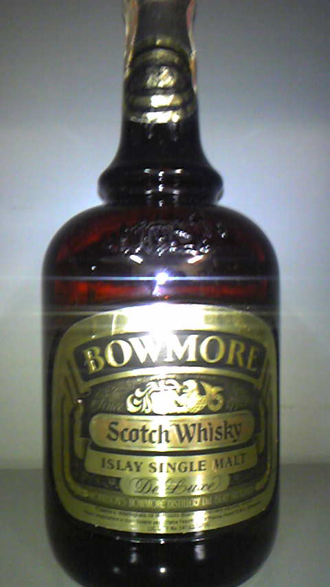 Brand: Bowmore Description: Fecchia & frassa import – Dumpy brown bottle – De Luxe edition – Gold & black label printed in black & gold – Screw black cap |