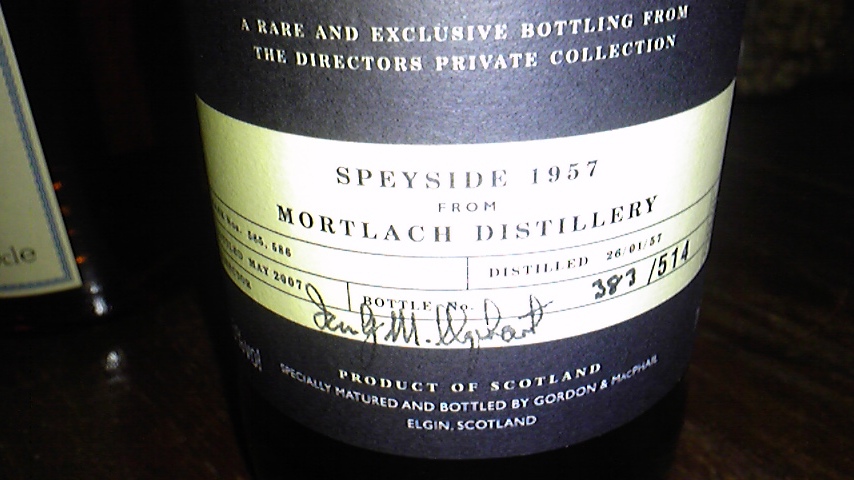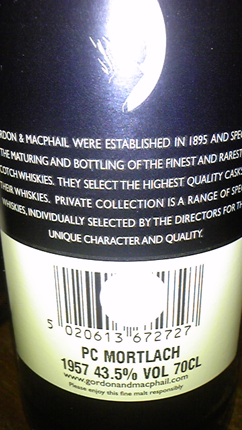 ジョニーウォーカー、ジョンパーなどの原酒。ダフタウンの7つの蒸留所のうち一番古く、1823年ジェイムズ・フィンドゥレーターにより創設。1837年にはグレングラント蒸留所の創設者、ジェイムズとジョンのグラント兄弟がオーナーとなった。その際グレングラント蒸留所建設のための費用捻出のため、モートラックの設備が売却されてしまう。蒸留することができなくなったモートラックは一時教会として利用された。1895年には医師でもあるミッチェル・カウイが経営にあたる。彼は地方政治でも活躍し、ウイスキー業界の発展に尽力した。1923年にジョンウォーカー&サンズにより買収されて以降、ジョニーウォーカーの原酒として供給されている。現在のオーナーはディアジオ。 密造酒時代の仕込み水はハイランド・ジョンの泉であったが、現在はコンバルヒルの丘の泉から引いている。 1944年を除き、第二次世界大戦中も操業を許可された唯一の蒸留所である。 本ボトルは50年という長熟カスク。にもかかわらずこのボディの安定感は奇跡としか言いようがない。G&Mはこの他にもモートラックの50年モノをリリースしている。 Mortlach 50y 1936-1986 40%, Gordon & MacPhail Mortlach 50y 1938-1988 40%, Gordon & MacPhai Mortlach 50y 1939-1989 40%, Gordon & MacPhail Mortlach 50y 1957-2007 ”Ping V” 41.7%, G&M for Juuls, 104 Bts. |