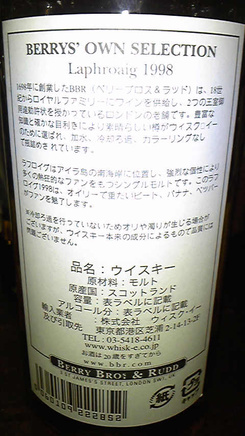 全体的にバランスがどうこういうより 甘みがあり、刺激感はうまく抑えられたラフロイグ