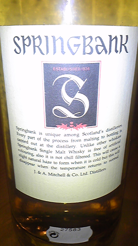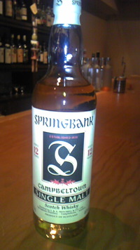 もはや貴重となったスプリングバンクOB12年。赤アザミは初期バーボン樽、緑アザミはシェリー樽である。私としてはこの2つであれば比較的華やかでライトなバーボン樽熟成の本ボトルが好きだ。このあたりが当たり前のように飲める時代であればいいのだが。 |