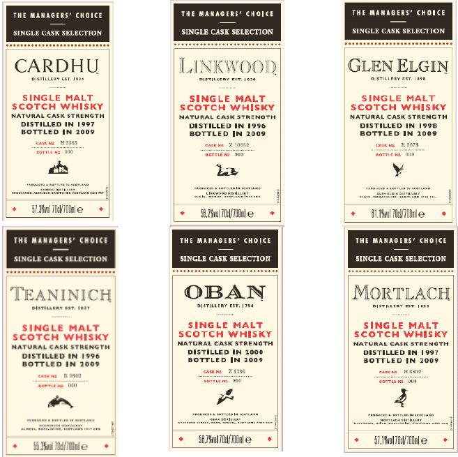 | £250 | Cragganmore, RL(*ロッホナガー), Glenkinchie, Dalwhinnie, Clynelish , Cardhu, Glen Elgin, Mortlach, Knockando, Glen Ord |