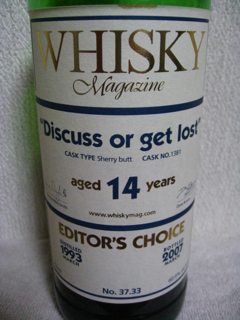 【速】クラガンモア 1993-2007 WHISKY MAGAZINE ”Discuss or get lost" No.37.33 シェリーバット カスクナンバー1381 60.9度