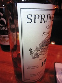 正直、スプリングバンクはバーボン樽にこそ真骨頂があると思っていたりしまして、しかも鉄板プライベートボトリング。十分堪能できました(シェリー樽も好きなんですが。。。2つはいいかな)。