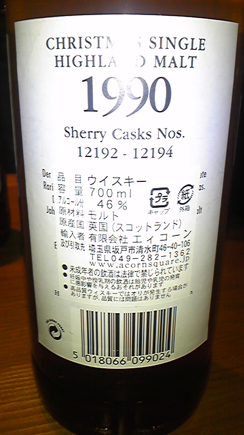 【ミドル】:ボディしっかりしている ナッツ アーモンドも 複雑とまではいかないが、決してシンプルすぎない しっかりとシェリーカスクの良さが引き出されている 【フィニッシュ】:鼻抜け返りもしっかり 辛味は唐辛子イメージ バニラコーティング ホットケーキ 焦げた砂糖 キャラメル 程よいタンニン 本年のクリスマスボトリングは当たり。しっかりシェリー樽の良さが出ていますし、46度のボトリングはヴァッティングによってコクが出てボディにとても良好なフレーバーを与えていると思います。
