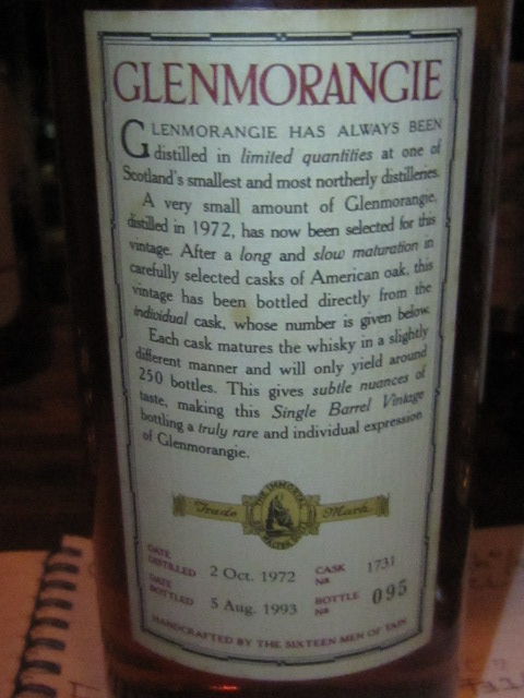 【速】グレンモーレンジ Glenmorangie 1972/1993 ”Single Barrel” (46%, OB, C#1797)