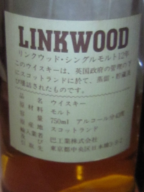巴工業輸入のリンクウッドオフィシャルボトル。40度バージョンは海外でもまれに見かけるが、酒税の関係か国内正規特級は43度バージョン。