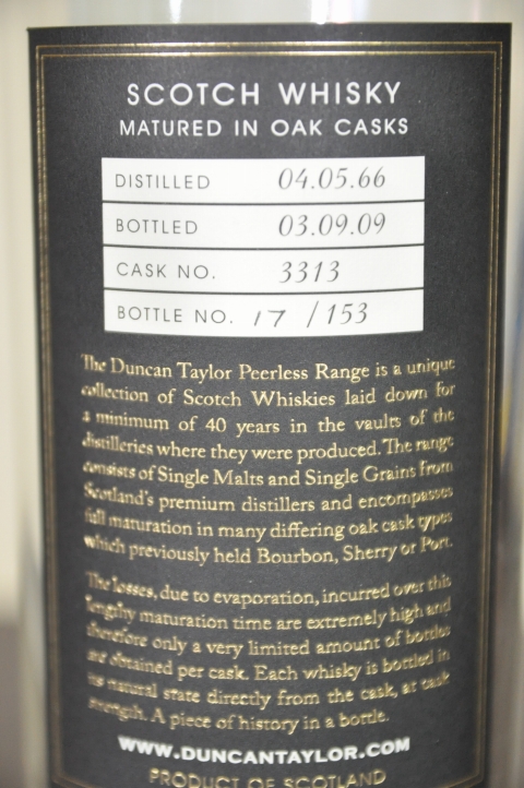 ボウモア BOWMORE 43yo 1966 (DT Special Peerless, 44.9%, C#3313, 70CL, Oak Cask, 153Btls) |