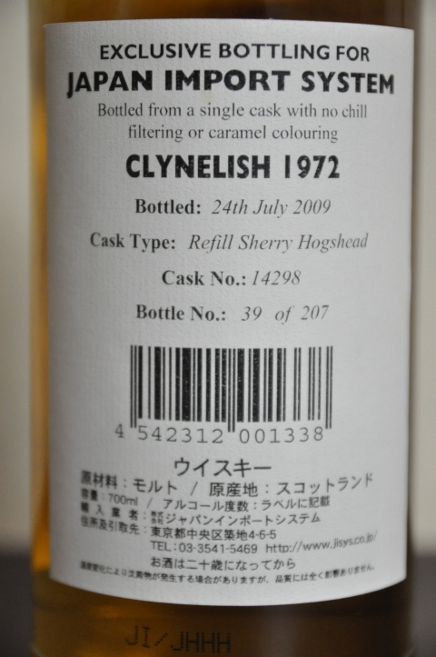のちのブローラとして利用される旧蒸留器で「クライネリッシュ」が仕込まれた最終年月は1968年8月とのことですので、本ボトルは正真正銘、新蒸留器を利用した「クライネリッシュ」。