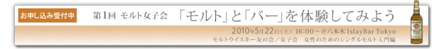 日にちも差し迫っておりますが、5/22シングルモルト女子会という企画がアイラバー(六本木)さんで開催されるようです。