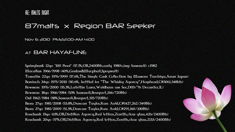 イベントレポート タケモトカツヒコ 2010年9月13日 【写真】ボトル近影 ボトル近影:[MaltNight再来]87Malts×探索者を飲む@大阪 いろいろと考えた結果、11月のイベントにもゼニスローズバンク15年、20年(共にフルプルーフバージョン)を持参することに決めました。 これで予定枠6本が埋まりました。何卒よろしくお願い申し上げます。 #マッカランの瓶詰年について修正いたしました! #イベント シェア FacebookTwitterLINEEmail この記事を書いた人 タケモトカツヒコ この著者の記事 日記 突然ですが、只今USTテスト放送中~ウイスキー話し相手募集~ 日記 武田邦彦(中部大学教授)氏のTV発言について:学問の自由は倫理を超越できない 日記 Adobe Edge : HTML5アニメーションツール 日記 携帯動画 日記 Whiskylink Ustream 日記 TOPPING D2+TP60 前の記事猛暑がそうさせた親子次の記事トリス エクストラ