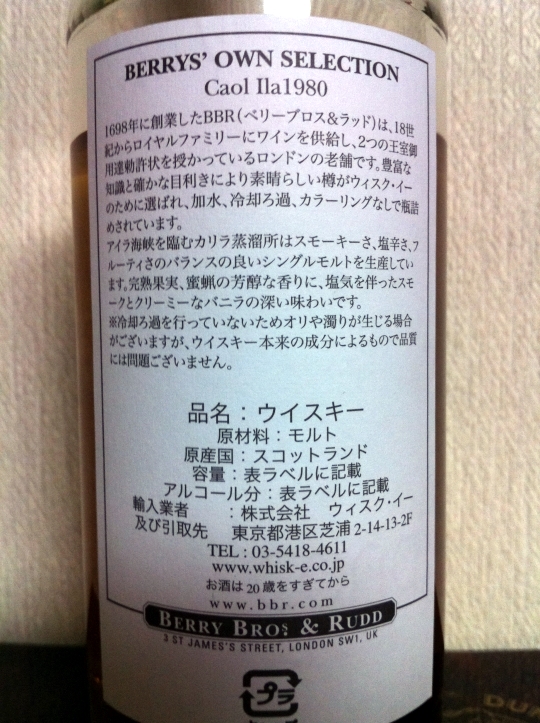 BBRカリラというと昨年の1982/2009LMDW向けが記憶に新しいところですが、今回のリリースとは好対象で、本ボトルで分厚いとは言えないまでも時間経過とともに膨らむボディを「カリラ」で感じるというのは、古くから飲まれている方には懐かしく、最近のOBと比較するとハウススタイル的に不思議な感覚をおぼえる方もいるらっしゃるかも知れません。