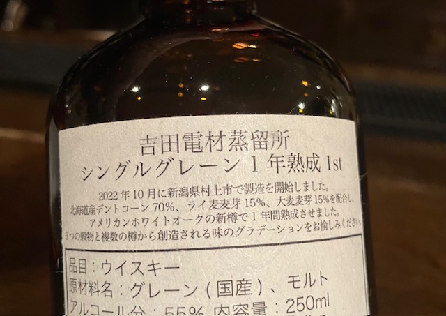 吉田電材蒸溜所シングルグレーン1年熟成1st(1900円)