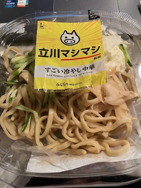 腹が減っては洗い物が出来ん!という事でコンビニに行ったら冷やし中華の立川マシマシが目に飛び込んで来たので、再び最後の晩餐と称し、最後のハイカロリーお夜食にしたいと思います