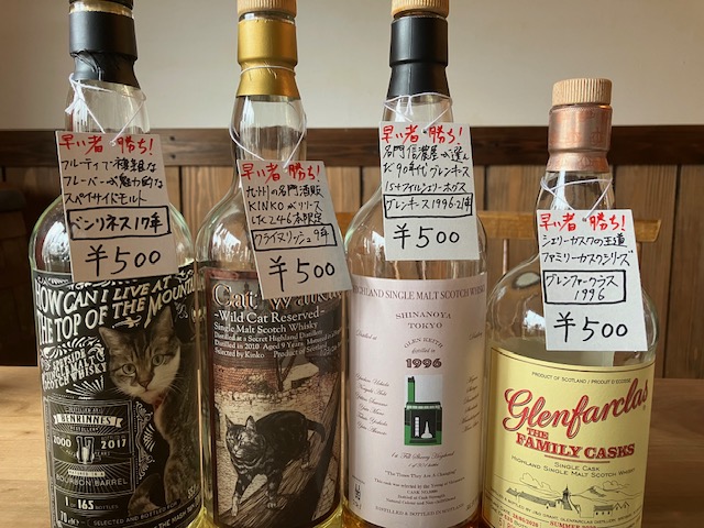 これらの写真のウイスキー達は残量少ない一期一会的売り切れ御免の早い者勝ちとなっております