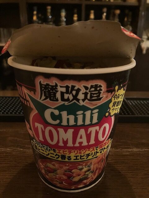 前回のガリマヨカレーに続いて、丑三つ時に、生姜とニンニク香るエビチリトマトの背徳感がたまりまへんな