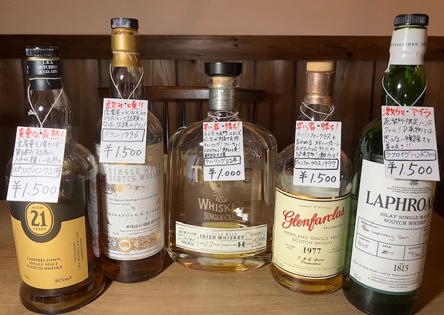 日記 BARwhiskycat1494 2025年11月1日 こんなん持って行きます3~BAR EXPO OSAKA 2025~ コニャニャチハ〜・・・こんなん持って行きます猫マスターですう~ん・・・バーエキスポ という事でバーエキスポ大阪2025に持って行くボトルをご紹介します さてそれでは早速! ジャン! 持参!! 詳細につきましてはググって頂くか、ググって下さい これらのボトルはバーエキスポのイベント向け特別仕様で、ご提供はプラカップで10mlとなっております これらの写真のウイスキー達は残量少ない一期一会的売り切れ御免の早い者勝ちの物もございますので、その際はご容赦下さいませ これはとにかく無くなる前に一杯飲んどかないと それでは11月3日(月・祝)にバーエキスポの会場でお待ち申し上げております 猫バー店頭でもチケット発売中!! カテゴリー一覧 ウイスキーメニュー 新入荷ボトル 追憶ボトル 今月のお休み お知らせ シェア FacebookTwitterLINEEmail この記事を書いた人 BARwhiskycat1494 この著者の記事 日記 文春砲 日記 猫バーの今月のお休み~2025年12月~ 日記 要餃子 日記 反省コンプリート 日記 外飲み最強シーズン 日記 手洗い、うがい、カスクストレングス 前の記事日記2025年10月31日次の記事日記2025年11月1日
