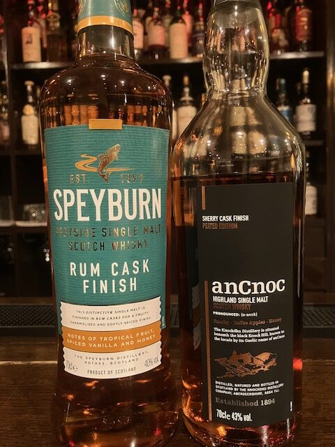 いずれもノンエイジの入門編的オフィシャルボトルですが、スペイバーンは飲み易いあっさりしたラムカスクの甘さで、アンノックはしっかりピートのシェリーカスク仕上げとなっております![]()