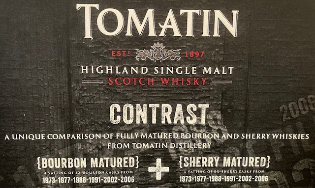 トマーティン・コントラストとはディケイズと同じく10年単位の複数年の樽をヴァッティングした物で、バーボン樽バージョンとシェリー樽バージョンの2種類で、非売品として一般には流通しなかったマニア垂涎の逸品である。